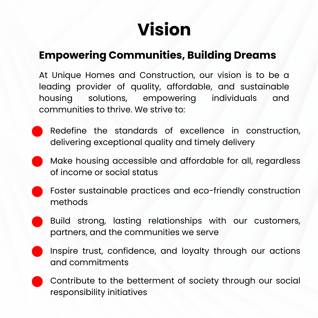 Welcome to Unique Homes and Construction, your trusted partner in the real estate industry